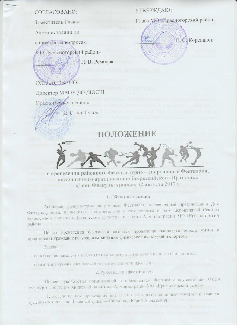 Красногорцы! Всех, кто желает помериться своими силами, приглашаем принять участие в районном физкультурно-спортивном Фестивале, посвященном празднованию Всероссийского Праздника "Дня физкультурника", который состоится на стадионе села Красногорского 12 августа 2017г. Открытие Фестиваля в 10.00.